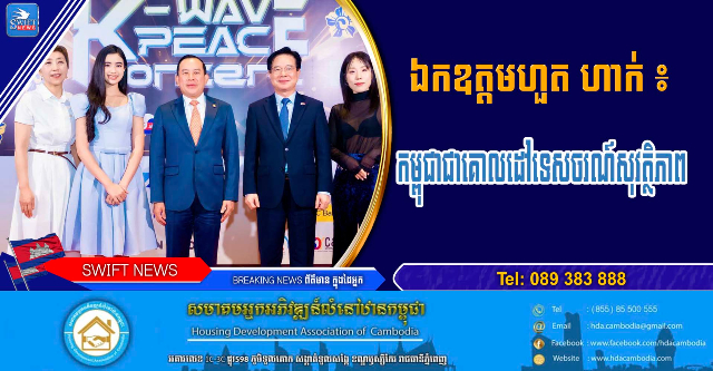 (αž—αŸ’αž“αŸ†αž–αŸαž‰)αŸ– αž―αž€αž§αžαŸ’αžαž˜ ហួត αž αžΆαž€αŸ‹ αžšαžŠαŸ’αž‹αž˜αž“αŸ’αžαŸ’αžšαžΈαž€αŸ’αžšαžŸαž½αž„αž‘αŸαžŸαž…αžšαžŽαŸ αž”αžΆαž“αž’αž‰αŸ’αž‡αžΎαž‰αž…αžΌαž›αžšαž½αž˜αžαŸ’αž›αŸ‚αž„αžŸαž»αž“αŸ’αž‘αžšαž€αžαžΆαž’αž”αž’αžšαžŸαžΆαž‘αžšαž€αŸ’αž“αž»αž„αž€αž˜αŸ’αž˜αžœαž·αž’αžΈ K-WAVE Peace Concert 2026 αžŠαŸ‚αž›αžšαŸ€αž”αž…αŸ†αž‘αžΎαž„αžŠαŸ„αž™ The Cambodia Branch of the Peaceful Unification Advisory Council (PUAC) αž˜αžΆαž“αž€αžΆαžšαž…αžΌαž›αžšαž½αž˜αž‡αžΆαžŸαžΆαžšαžœαžΈαžŠαŸαž’αžΌαžšαž”αžŸαŸ‹αž―αž€αž§αžαŸ’αžαž˜αž”αŸ’αžšαž’αžΆαž“αžΆαž’αž·αž”αžαžΈ Lee Jae-myung αž”αŸ’αžšαž’αžΆαž“αž€αŸ’αžšαž»αž˜αž”αŸ’αžšαžΉαž€αŸ’αžŸαžΆαž’αž„αŸ’αž‚αž€αžΆαžš Peaceful Unification Advisory Council (PUAC) αž“αž·αž„αžœαžαŸ’αžαž˜αžΆαž“αž•αŸ’αž‘αžΆαž›αŸ‹αžšαž”αžŸαŸ‹αž―αž€αž§αžαŸ’αžαž˜ Kim Chang-yong αž―αž€αž’αž‚αŸ’αž‚αžšαžŠαŸ’αž‹αž‘αžΌαžαžœαž·αžŸαžΆαž˜αž‰αŸ’αž‰ αž“αž·αž„αž–αŸαž‰αžŸαž˜αžαŸ’αžαž—αžΆαž–αž“αŸƒαžŸαžΆαž’αžΆαžšαžŽαžšαžŠαŸ’αž‹αž€αžΌαžšαŸ‰αŸαž”αŸ’αžšαž…αžΆαŸ†αž€αž˜αŸ’αž–αž»αž‡αžΆ, αž–αŸ’αžšαŸ‡αž“αžΆαž„ αž“αžšαŸ„αžαŸ’αžŠαž˜ αž‡αŸαž“αžŽαžΆ, αž›αŸ„αž€αžŸαŸ’αžšαžΈ Na Yun Jung αž”αŸ’αžšαž’αžΆαž“αž’αž„αŸ’αž‚αž€αžΆαžš Peaceful Unification Advisory Council αž”αŸ’αžšαž…αžΆαŸ†αž€αž˜αŸ’αž–αž»αž‡αžΆ, αž›αŸ„αž€ Myung Gyu Chung αž”αŸ’αžšαž’αžΆαž“αžŸαž˜αžΆαž‚αž˜αž€αžΌαžšαŸ‰αŸαž”αŸ’αžšαž…αŸ†αžΆαž€αž˜αŸ’αž–αž»αž‡αžΆ, αž›αŸ„αž€ Robin Kim αž”αŸ’αžšαž’αžΆαž“αžŸαž—αžΆαž–αžΆαžŽαž·αž‡αŸ’αž‡αž€αž˜αŸ’αž˜αž€αžΌαžšαŸ‰αŸαž“αŸ…αž€αž˜αŸ’αž–αž»αž‡αžΆ αž–αŸ’αžšαž˜αž‘αžΆαŸ†αž„αž›αŸ„αž€ αž›αŸ„αž€αžŸαŸ’αžšαžΈαžαŸ†αžŽαžΆαž„αž€αŸ’αžšαž»αž˜αž αŸŠαž»αž“ αž’αž„αŸ’αž‚αž€αžΆαžš αž“αž·αž„αž’αž“αžΆαž‚αžΆαžšαž€αžΌαžšαŸ‰αŸαž“αŸ…αž€αž˜αŸ’αž–αž»αž‡αžΆ αžŸαž·αžŸαŸ’αžŸαž“αž·αžŸαž·αŸ’αžŸαž αž“αž·αž„αž”αŸ’αžšαž‡αžΆαž–αž›αžšαžŠαŸ’αž‹αž€αž˜αŸ’αž–αž»αž‡αžΆ αž“αž·αž„αž€αžΌαžšαŸ‰αŸαž‡αžΆαž„αŸ’αŸ αŸ αž“αžΆαž€αŸ‹ αž“αŸ…αžŸαžŽαŸ’αž‹αžΆαž‚αžΆαžšβ€‹ Sun & Moon Riverside αžšαžΆαž‡αž’αžΆαž“αžΈαž—αŸ’αž“αŸ†αž–αŸαž‰αŸ”αž€αŸ’αž“αž»αž„αž±αž€αžΆαžŸαž“αŸƒαž€αž˜αŸ’αž˜αžœαž·αž’αžΈαž•αŸ’αžŸαž–αŸ’αžœαž•αŸ’αžŸαžΆαž™αžœαž”αŸ’αž”αž’αž˜αŸŒαžŠαŸαž˜αžΆαž“αžŸαžΆαžšαŸˆαžŸαŸ†αžαžΆαž“αŸ‹ αž“αž·αž„αž”αŸ’αžšαž€αž”αžŠαŸ„αž™αž’αžαŸ’αžαž“αŸαž™αž‡αŸ’αžšαžΆαž›αž‡αŸ’αžšαŸ…αž“αŸαŸ‡ αž‚αžŽαŸˆαž’αž’αž·αž”αžαžΈαž“αŸƒαž”αŸ’αžšαž‘αŸαžŸαž‘αžΆαŸ†αž„αž–αžΈαžš αž”αžΆαž“αžœαžΆαž™αžαž˜αŸ’αž›αŸƒαžαŸ’αž›αžŸαŸ‹αž›αžΎαž‚αž»αžŽαžαž˜αŸ’αž›αŸƒαž“αŸƒαžŸαž“αŸ’αžαž·αž—αžΆαž– αž€αžΆαžšαžšαž½αž”αžšαž½αž˜αž‚αŸ’αž“αžΆ αž–αŸ’αžšαž˜αž‘αžΆαŸ†αž„αž”αž‰αŸ’αž‡αžΆαž€αŸ‹αž–αžΈαž€αžΆαžšαž”αŸ’αžαŸαž‡αŸ’αž‰αžΆαž–αž„αŸ’αžšαžΉαž„ αž“αž·αž„αž–αž„αŸ’αžšαžΈαž€αž‘αŸ†αž“αžΆαž€αŸ‹αž‘αŸ†αž“αž„αž€αžΆαžšαž‘αžΌαž "αž—αžΆαž–αž‡αžΆαžŠαŸƒαž‚αžΌαž™αž»αž‘αŸ’αž’αžŸαžΆαžŸαŸ’αžšαŸ’αž" αžšαžœαžΆαž„αž–αŸ’αžšαŸ‡αžšαžΆαž‡αžΆαžŽαžΆαž…αž€αŸ’αžšαž€αž˜αŸ’αž–αž»αž‡αžΆ αž“αž·αž„αžŸαžΆαž’αžΆαžšαžŽαžšαžŠαŸ’αž‹αž€αžΌαžšαŸ‰αŸαž›αžΎαž‚αŸ’αžšαž”αŸ‹αžœαž·αžŸαŸαž™ αž‡αžΆαž–αž·αžŸαŸαžŸαž€αž·αž…αŸ’αž…αžŸαž αž”αŸ’αžšαžαž·αž”αžαŸ’αžαž·αž€αžΆαžšαž‡αŸ†αžšαž»αž‰αž‘αŸαžŸαž…αžšαžŽαŸ αž€αžΆαžšαž•αŸ’αž›αžΆαžŸαŸ