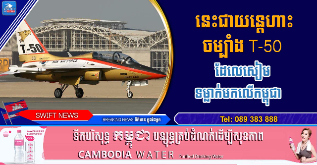 (ថៃ)៖ ប្រទេសថៃ ដាក់ពង្រាយយន្តហោះចម្បាំង T-50TH Golden Eagle ក្នុងសមរភូមិជាលើកដំបូង ដោយប្រើទម្លាក់គ្រាប់មកលើកដែនអធិបតេយ្យរបស់កម្ពុជានៅថ្ងៃទី២៤ ខែធ្នូ វេលម៉ោង ១០:០០នាទី យោធាថៃបានប្រើប្រាស់យន្តហោះចម្បាំងប្រភេទ (T-50) ទម្លាក់គ្រាប់បែកចំនួន ៤គ្រាប់ចូលក្នុងភូមិដែលមានប្រជាជនកំពុងរស់នៅស្ថិតក្នុងភូមិសាស្ត្រស្រុកបាណន់ ខេត្តបាត់ដំបង និងម៉ោង ១១:០០នាទីទម្លាក់ចំនួន ៤គ្រាប់ចូលស្រុកស្រីស្នំ ខេត្តសៀមរាប។ ។ ការប្រើប្រាស់យន្តហោះចម្បាំង T-50TH របស់កងទ័ពអាកាសភូមិន្ទថៃ រួមជាមួយយន្តហោះចម្បាំង F-16 និង Gripen គឺជាការផ្លាស់ប្តូរដ៏សំខាន់មួយ ដោយយន្តហោះចម្បាំង T-50 Golden Eagle ដែលមានដំណើរការខ្ពស់ ផ្តល់ជូននូវដំណោះស្រាយបណ្តុះបណ្តាល ដែលចំណាយតិចសម្រាប់កងទ័ពអាកាសសម័យទំនើប។ បើតាមវេបសាយ DEFENCE SECURITY ASIA បានឱ្យដឹងថា ការដាក់ពង្រាយយន្តហោះចម្បាំង T-50TH Golden Eagle របស់កងទ័ពអាកាសភូមិន្ទថៃ ក្នុងបេសកកម្មប្រយុទ្ធផ្ទាល់ រួមជាមួយយន្តហោះចម្បាំង F-16 Fighting Falcons និងយន្តហោះចម្បាំង Saab Gripen គឺដោយសារយន្តហោះនេះចំណាយតិចជាង ហើយមានសមត្ថភាពខ្ពស់ និងទំនើបហោះបានក្នុងល្បឿនលឿន។ យន្តហោះ T-50TH មានកម្លាំងពហុតួនាទីដែលអាចទុកចិត្តបាន ដែលមានសមត្ថភាពរួមបញ្ចូល ទៅក្នុងប្រតិបត្តិការផ្លូវអាកាសរួមបញ្ចូលគ្នាដែលមានអាំងតង់ស៊ីតេខ្ពស់។បច្ចុប្បន្នប្រទេសថៃកំពុងប្រតិបត្តិការយន្តហោះ T-50TH ចំនួន 14 គ្រឿងក្នុងតួនាទីវាយប្រហារស្រាល/LIFT ដោយផ្តល់ឱ្យទីក្រុងបាងកកនូវសមត្ថភាពដ៏សំខាន់មួយចាប់ពីការបណ្តុះបណ្តាលកម្រិតខ្ពស់ រហូតដល់ប្រតិបត្តិការវាយប្រហារយុទ្ធសាស្ត្រតាមផ្លូវអាកាសដែលចំណាយតិច។ យន្តហោះ KAI T-50 Golden Eagle គឺជាក្រុមគ្រួសារយន្តហោះហ្វឹកហាត់ល្បឿនលឿនជាងសំឡេងរបស់កូរ៉េខាងត្បូង យន្តហោះប្រយុទ្ធស្រាល និងយន្តហោះចម្បាំងពហុតួនាទី ដែលបង្កើតឡើងដោយក្រុមហ៊ុន Korea Aerospace Industries (KAI) ជាមួយក្រុមហ៊ុន Lockheed Martin។ វាគឺជាយន្តហោះល្បឿនលឿនជាងសំឡេងដំបូងគេរបស់កូរ៉េខាងត្បូង និងជាយន្តហោះហ្វឹកហាត់ ល្បឿនលឿនជាងសំឡេងមួយក្នុងចំណោមយន្តហោះហ្វឹកហាត់ល្បឿនលឿនជាងសំឡេងមួយចំនួនរបស់ពិភពលោកផងដែរ។  យន្តហោះ KAI T-50 Golden Eagle មានការកំណត់រចនាសម្ព័ន្ធកៅអីពីរដែលត្រូវបានរចនាឡើង សម្រាប់ការបណ្តុះបណ្តាលអ្នកបើកយន្តហោះកម្រិតខ្ពស់។ កាប៊ីនយន្តហោះត្រូវបានហ៊ុព័ទ្ធដោយដំបូលពពុះតែមួយដុំ ដែលផ្តល់ឱ្យអ្នកដំណើរខាងក្រោយនូវភាពមើលឃើញកាន់តែ ប្រសើរឡើង ដោយផ្តល់នូវទិដ្ឋភាព 320 ដឺក្រេក្នុងអាហ្ស៊ីមុត និងការយល់ដឹងអំពីស្ថានភាពកាន់តែប្រសើរឡើង បើប្រៀបធៀបទៅនឹងយន្តហោះហ្វឹកហាត់មុនៗ។ វិមាត្ររួមរបស់យន្តហោះមានប្រវែង 13.14 ម៉ែត្រ ស្លាបប្រវែង 9.45 ម៉ែត្រ (រួមទាំងការផ្គត់ផ្គង់ចុងស្លាប) និងកម្ពស់ 4.94 ម៉ែត្រ ដែលរួមចំណែកដល់ទម្រង់ត