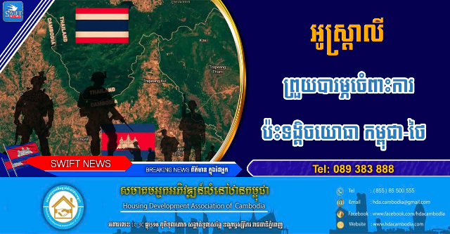 អូស្ត្រាលី បង្ហាញការព្រួយបារម្ភយ៉ាងខ្លាំងចំពោះការប៉ះទង្គិចយោធា កម្ពុជា-ថៃ ជាពិសេសការប្រើប្រាស់អាវុធបំផ្លិចបំផ្លាញធុនធ្ងន់