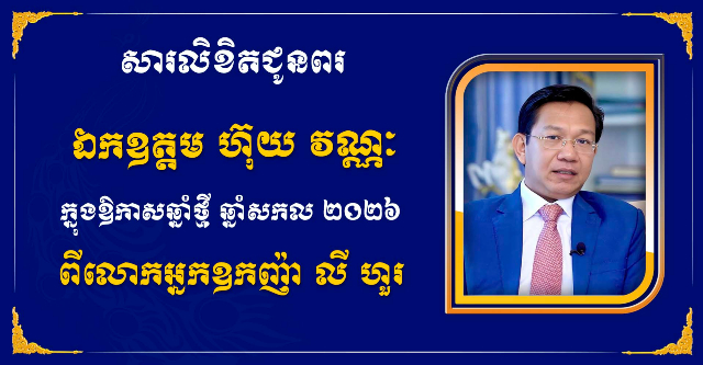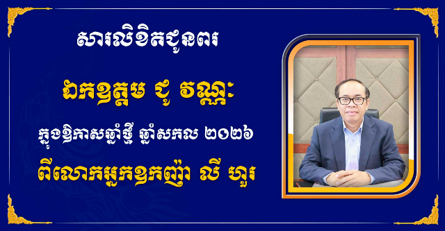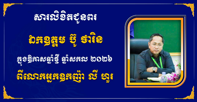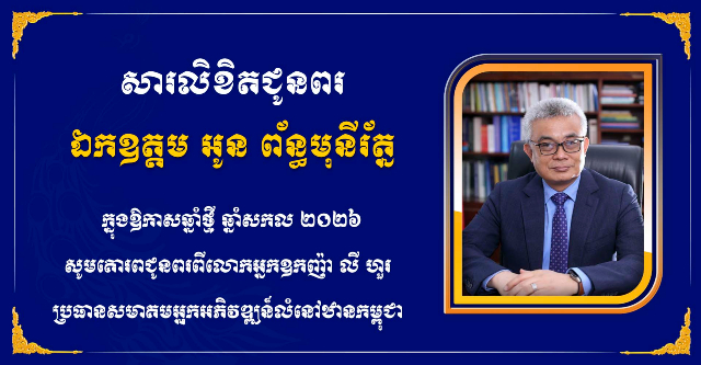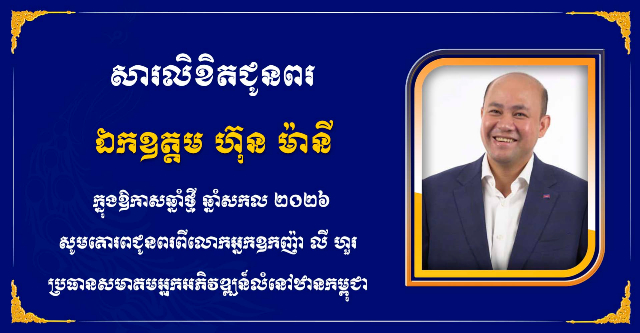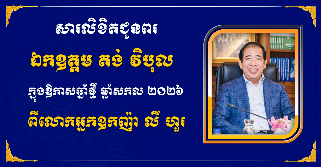 (ភ្នំពេញ)៖ លោកអ្នកឧកញ៉ា លី ហួរ ប្រធានសមាគមអ្នកអភិវឌ្ឍន៍លំនៅឋានកម្ពុជា និងភរិយា ព្រមទាំងថ្នាក់ដឹកនាំ សមាជិក-សមាជិកា នៃសមាគមអ្នកអភិវឌ្ឍន៍លំនៅឋានកម្ពុជា សូមផ្ញើសារលិខិតគោរពជូនពរ ឯកឧត្តម ប៊ូ ថារិន អគ្គនាយកនិយ័តករគណនេយ្យ និងសវនកម្ម ក្នុងឱកាសចូលឆ្នាំថ្មី ឆ្នាំសកល គ្រិស្តសករាជ ២០២៦ សូមឱ្យមានសុខភាពល្អ កម្លាំងមាំមួន បញ្ញាញាណវាងវៃ អាយុយឺនយូរ ជៀសផុតពីរោគាព្យាធិ ដើម្បីបន្តដឹកនាំនិយ័តករគណនេយ្យ និងសវនកម្ម ឆ្ពោះទៅរកការអភិវឌ្ឍជានិច្ចនិរន្តរ៍ ។ យើងខ្ញុំសូមសម្តែងនូវសេចក្តីនូវការកោតសរសើរ ដោយស្មោះអស់ពីដួងចិត្ត ជូនចំពោះ ឯកឧត្តម ដែលបានចូលរួមចំណែកយ៉ាងសកម្មបម្រើប្រទេសជាតិ ជាមួយរាជរដ្ឋាភិបាលដើម្បីបុព្វហេតុជាតិមាតុភូមិកម្ពុជា៕