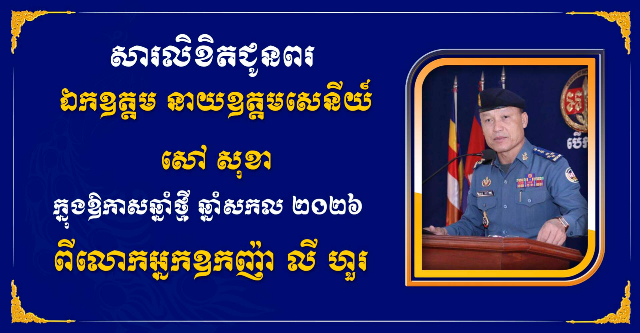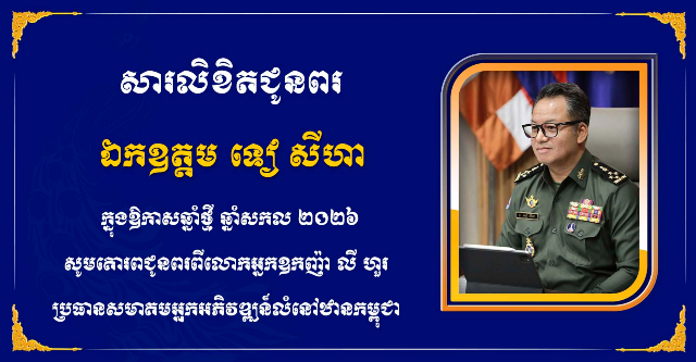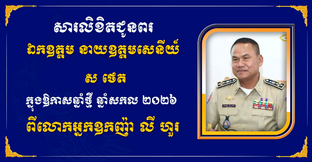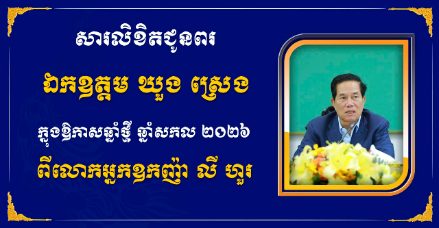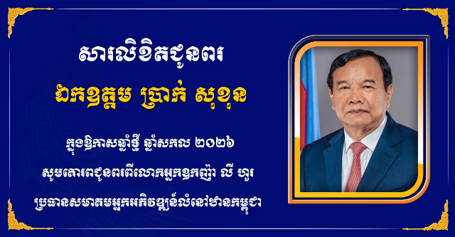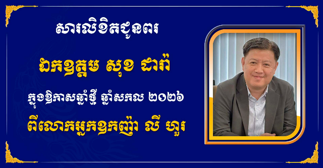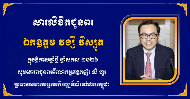 (ភ្នំពេញ)៖ លោកអ្នកឧកញ៉ា លី ហួរ ប្រធានសមាគមអ្នកអភិវឌ្ឍន៍លំនៅឋានកម្ពុជា និងភរិយា ព្រមទាំងថ្នាក់ដឹកនាំ សមាជិក-សមាជិកា នៃសមាគមអ្នកអភិវឌ្ឍន៍លំនៅឋានកម្ពុជា សូមផ្ញើសារលិខិតគោរពជូនពរ ឯកឧត្តម សុខ ដារ៉ា អគ្គនាយកនៃនិយ័តករបរធនបាលកិច្ច ក្នុងឱកាសចូលឆ្នាំថ្មី ឆ្នាំសកល គ្រិស្តសករាជ ២០២៦ សូមឱ្យមានសុខភាពល្អ កម្លាំងមាំមួន បញ្ញាញាណវាងវៃ អាយុយឺនយូរ ជៀសផុតពីរោគាព្យាធិ ដើម្បីបន្តដឹកនាំនិយ័តករបរធនបាលកិច្ច ឆ្ពោះទៅរកការអភិវឌ្ឍជានិច្ចនិរន្តរ៍ ។ យើងខ្ញុំសូមសម្តែងនូវសេចក្តីនូវការកោតសរសើរ ដោយស្មោះអស់ពីដួងចិត្ត ជូនចំពោះ ឯកឧត្តម ដែលបានចូលរួមចំណែកយ៉ាងសកម្មបម្រើប្រទេសជាតិ ជាមួយរាជរដ្ឋាភិបាលដើម្បីបុព្វហេតុជាតិមាតុភូមិកម្ពុជា៕
