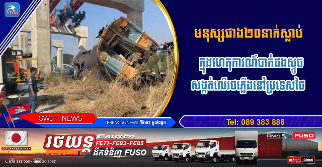 (ថៃ)៖ ចំនួនអ្នកស្លាប់កើនឡើងដល់២២នាក់ និងរងរបួសរាប់សិបនាក់ក្នុងហេតុការណ៍បាក់ដងស្ទូច សង្កត់លើរថភ្លើងដឹកអ្នក ដំណើរនៅស្រុកស៊ីខៅ ក្នុងខេត្តនគររាជសីមាប្រទេសថៃ នាវេលាម៉ោងម៉ោងប្រហែល ៩:០៥ ព្រឹក ថ្ងៃទី១៤ ខែមករា ឆ្នាំ២០២៦ នៅពេលដែលដងស្ទូចដ៏ធំមួយដែលកំពុងប្រើប្រាស់ក្នុងការសាងសង់ស្ពានរថភ្លើង ល្បឿនលឿន បានដួលរលំលើរថភ្លើងដឹកអ្នកដំណើរបាងកក-ឧប៊ុនរ៉ាចាថានី បណ្តាលឱ្យរថភ្លើងធ្លាក់ផ្លូវ និងឆេះ។ របាយការណ៍ដំបូងបានបញ្ជាក់ពីការស្លាប់ជាច្រើន និងរបួសរាប់សិបនាក់។ នេះបើតាមកាសែតថៃ Khaosod។ក្នុងហេតុការណ៍នេះអាជ្ញាធរបាននិយាយថា អ្នកដំណើរភាគច្រើននៅក្នុងទូរថភ្លើងនោះគឺជាសិស្សសាលា។ ខណៈប្រតិបត្តិការជួយសង្គ្រោះកំពុងបន្តរុករកជនរងគ្រោះបន្ថែម។យ៉ាងហោចណាស់មានអ្នកដំណើរ ៤០ នាក់ត្រូវបានរាយការណ៍ថារងរបួស។ អង្គភាពជួយសង្គ្រោះជាច្រើនបានប្រញាប់ប្រញាល់ទៅកាន់កន្លែងកើតហេតុ ដោយប្រើឧបករណ៍កាត់ និងរាលដាលដើម្បីរំដោះអ្នកដែលជាប់នៅក្នុងទូរថភ្លើង។ការស៊ើបអង្កេតបឋមបានរកឃើញថា ស្ទូចបានដួលរលំទៅលើផ្លូវរថភ្លើងភ្លាមៗមុនពេលរថភ្លើងមកដល់។ រថភ្លើងដែលកំពុងធ្វើដំណើរក្នុងល្បឿនលឿន មិនអាចជាន់ហ្វ្រាំងទាន់ពេលវេលាបានទេ ហើយបានបុកនឹងដងស្ទូច ដែលបណ្តាលឲ្យមានកម្ទេចកម្ទីសំណង់បន្ថែមធ្លាក់មកលើរថភ្លើង និងនាំឲ្យរថភ្លើងធ្លាក់ចេញពីផ្លូវតែម្ដង៕